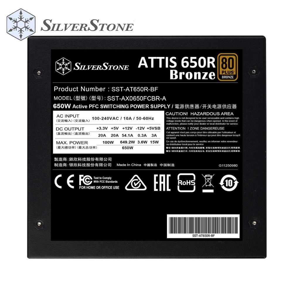 SiLVERSTONE POWER SUPPLY 650W ATTiS 650R 80 PLUS Bronze PSU